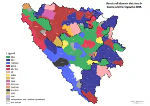 Municipal elections were held in Bosnia and Herzegovina on 2 October 2004 to elect mayors and assemblies in 143 municipalities.