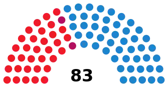 Last election 48 seats, 48.5% 32 seats, 36.8% 2 seats, 4.0%[lower-alpha 1]