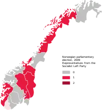 - ↑ Elster, Kristian; Helljesen, Vilde (September 10, 2009). "SVs oppslutning halvert" (in Norwegian). NRK. Retrieved November 26, 2009.