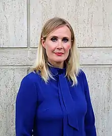 • Dr. Herdís Thorgeirsdóttir,[7] a lawyer and professor of constitutional law and human rights at Bifröst University, announced her candidacy on 30 March.[8] She called a press meeting that day and said her campaign would be an experiment on democracy, whether it was possible to run without the backing of powerful financial actors and political parties. She referred to the financial collapse in 2008 and the Parliamentary investigative report which concluded that the main reason for the collapse were the close ties between politics and the corporate world seriously damaging the democratic process. Her candidacy was an attempt to increase accountability in the democratic process by not accepting funding from corporations as it is crucial in the struggle against prevailing corruption to limit the influence of money in elections. She is the President[9] of the European Women Women Lawyers' Association and Iceland's representative at the Venice Commission of the Council of Europe.