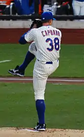 The Dodgers re-signed outfielder Juan Rivera to a one-year contract with a 2013 option.[16] They filled two of their open spots in rapid succession on November 15 by signing second baseman Mark Ellis to a two-year contract[17] and backup catcher Matt Treanor to a one-year contract.[18] The Dodgers signed infielder Adam Kennedy to a one-year contract on December 1 to provide some infield depth[19] and they signed veteran starting pitcher Chris Capuano to a two-year contract on December 2 to fill the void left by Kuroda's departure.[20] They added to their bench on December 5 by signing veteran utility player Jerry Hairston Jr. to a 2-year contract.[21] The Dodgers finished their rebuilding of the rotation on December 8 by signing Aaron Harang to a 2-year contract, with a vesting option.[22] The Dodgers chose to re-sign relief pitcher Mike MacDougal, agreeing to a one-year contract (including a 2013 option) with him on January 5.[23] They added another relief pitcher on February 3 by signing veteran Todd Coffey to a one-year contract.[24]