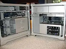 Comparison of the internals of the Power Mac G5 (left) and the Mac Pro 2006 (right)
