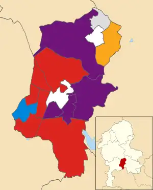 The Labour Party held control of the council and increased its majority by one compared with the previous election when it had gained the council from no overall control. Notably, UKIP came a close second and gained four seats, despite not previously contesting an election in the district; a subsequent Conservative defection shortly after the election saw them assume the status of official opposition party. Compared with the results of the 2010 election when these seats were last up for election, Labour's vote share decreased slightly but they gained one seat from the Conservatives whilst UKIP gained three seats from the Conservatives and one from the Liberal Democrats. This left the Conservatives and Lib Dems, who had previously won eight seats between them and run the council in a coalition, winning just one seat each.