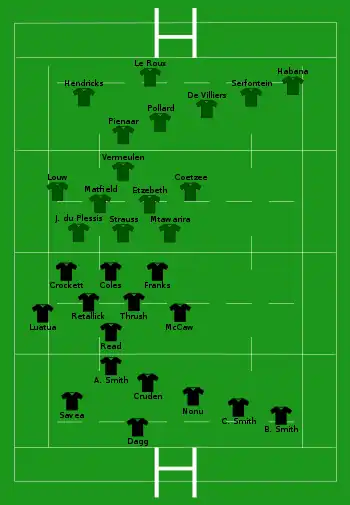 Jean de Villiers (c) ‡ Centre (1981-02-24)24 February 1981 (aged 33) 96 South Africa Western Province