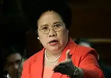 Senator Miriam Defensor Santiago, the author of Senate Resolution Nos. 535 (Extradition treaty with United Kingdom), 536 (with India), and 537 (with Spain).[32]