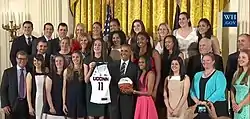 - ↑ Courant, Hartford. "UConn Women Ring Up 11th National Title; Defeat Syracuse, 82–51". courant.com. Retrieved April 9, 2016.