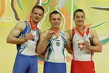 - ↑ "Men's Apparatus Finals Results Horizontal Bar" (PDF). Gymnastics Results. European Union of Gymnastics. 19 April 2015. Archived from the original (PDF) on 5 July 2016. Retrieved 21 April 2015.