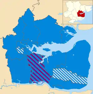 The governing group of Conservative councillors continued to have the same number of representatives with at least across all areas of the district - all bar two councillors are members of this political party as before the election. The Althorne and Southminster two-seat wards returned one other affiliated member each, the latter being a hold by an independent councillor and the former a gain by a member of UKIP (from a Conservative) both thus to co-represent the area in council meetings alongside a Conservative member. A Conservative gain of an independent affiliated seat in the district, one of those for Burnham on Crouch North completed the election in which 24 seats of 26 are held by members of the same governing party.