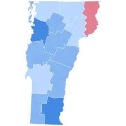 Clinton won Vermont with 55.7% of the vote and[1] a vote margin of 25.9%, a substantial decline from Barack Obama's 35.6% margin in 2012.[2] Trump received 29.8% of the vote statewide and carried Essex County—the most rural and sparsely populated county in the state, thus making him the first Republican presidential candidate to win a county in Vermont since George W. Bush in 2004.