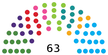 The 63 members of the Althing are elected using open list proportional representation in 6 multi-member constituencies.[16] Of the 63 seats, 54 are elected using constituency results and determined using the d'Hondt method. The remaining nine supplementary seats are awarded to parties that crossed the 5% national electoral threshold in order to give them a total number of seats equivalent to their national share of the vote.[16]
