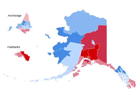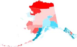 Alaska shifted 4.67% to the Democratic nominee compared to the 2016 election. The state ultimately weighed in as 14.51 percentage points more Republican than the national average in 2020. Biden was the first Democratic presidential candidate to win Anchorage since Lyndon B. Johnson in 1964, and the first Democrat to receive a majority in Haines Borough since 1964.