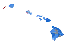 Hawaii was one of only seven states and the District of Columbia where Trump's margin increased from 2016, and its 2.7% shift was the largest. Trump won more precincts than he did in 2016, winning more of the west coast of Oahu than he did before and every single vote on Niihau.[33] Trump won more votes in Hawaii than any Republican in history (but not a larger percentage), narrowly beating George W. Bush's performance in 2004.[34] Despite this modest pro-Trump margin swing, Biden received more votes than Clinton, as was the case for the six other states (California, Nevada, Utah, Arkansas, Florida, and Illinois) and the District of Columbia that he won.[35]