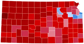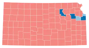 Biden's gains relative to Hillary Clinton were powered by significant improvement in Kansas' suburbs and college towns: he became the first Democrat to carry Johnson County, the state's most populous and home to Overland Park and Olathe, since Woodrow Wilson in 1916.[4] It was also the first since 1896 that Democrats received a majority in the county. Biden was also the first Democrat ever to win Riley County, anchored by the Fort Riley military installation and Kansas State University;[5] and the first to win Shawnee County, home to the state capital of Topeka, since Bill Clinton's narrow plurality in 1992.[6]