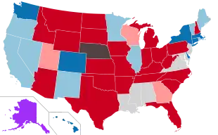 Following the election, Republicans controlled redistricting in 20 state governments, totaling 188 House districts, whereas Democrats had control in states with a total of 73 districts.[6] Overall, these elections saw the fewest partisan changes in state legislatures since 1944.[7]