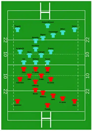 Test: 1383 2 February 2020 (1 BP) Wales  15–19  Italy Cardiff Arms Park, Cardiff