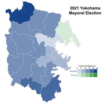 - ↑ "横浜市長選挙候補者別得票数" (PDF). city.yokohama.lg.jp (in Japanese). Retrieved 31 August 2021.