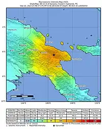 3. 1 2 3 4 5 Public Domain This article incorporates text from this source, which is in the public domain: "M 7.6 – 67 km E of Kainantu, Papua New Guinea". earthquake.usgs.gov. United States Geological Survey. 10 September 2022. Archived from the original on 11 September 2022. Retrieved 11 September 2022.
