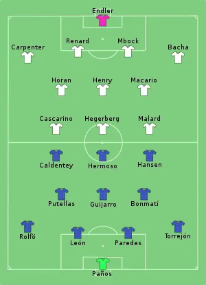 - ↑ Each team was given only three opportunities to make substitutions, with a fourth opportunity in extra time, excluding substitutions made at half-time, before the start of extra time and at half-time in extra time.