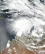 On 7 January, the BoM noted the possibility of a tropical low forming near the north Kimberley, as a monsoon trough was expected to develop along the Top End. It was predesignated as 03U.[33] This came to fruition 4 days later, when the BoM reported that it was developing over the southern Joseph Bonaparte Gulf within the trough.[9] The JTWC would begin to monitor it on January 14.[34]