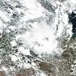 The next day, it further intensified, becoming a Category 4 severe tropical cyclone.[18] Shortly thereafter, Jasper began weakening, with its eye becoming cloud-filled and the deep convection eroding due to dry air entrainment.[19] Jasper would reintensify, and at 12:00 UTC on 13 December, made landfall as a Category 2 tropical cyclone in Wujal Wujal, Queensland.[7] After making landfall, the JTWC discontinue warnings on the system later that day.[20] However, Jasper remained traceable, and the BoM would give the tropical low a moderate chance of redeveloping into a tropical cyclone on 15 December.[21] By 14:00 UTC that day, the BoM reported that Jasper had weakened to a tropical low.[22] However, Jasper remained traceable, and the BoM would give the tropical low a moderate chance of redeveloping into a tropical cyclone on 15 December.[21] However, they would soon downgrade its chances of re-developing into a very low as the storm turned southeast further inland, and on 18 December, Jasper was last noted over the Cape York Peninsula.[23]