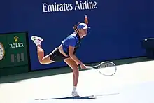 ![]() Swiatek practicing at the 2023 US Open | |