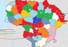 | Lithuanian Regions Party | 28,927 | 2.47 | 56 | 1 | |||||||