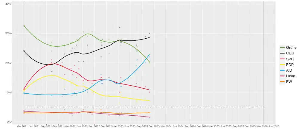 Grüne | CDU | SPD | FDP | AfD | Linke | FW | BSW | Others | Lead |