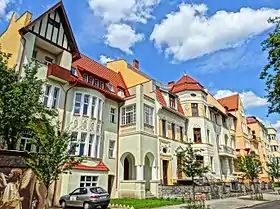 The edifice at then Goethestraße 29 has been commissioned by a master mason, Mr Weiss.[8] In the 1930s, young Zbigniew Raszewski (1925-1992), a future Polish writer and theatre historian, lived there with his family.[5]