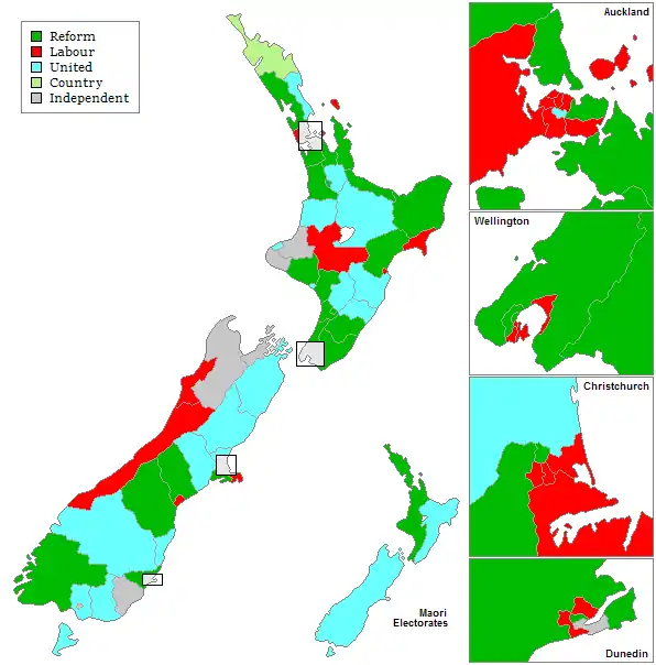 Reform   Labour   United   Country Party   Independent Liberal   Ratana   Independent