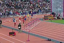 The 400 metres hurdles at the Summer Olympics is the longest hurdling event held at the multi-sport event. The men's 400 m hurdles has been present on the Olympic athletics programme since 1900, with a sole gap at the 1912 Summer Olympics. The women's event was added to the programme over eighty years later, at the 1984 Olympics. It is the most prestigious 400 m hurdles race at elite level.