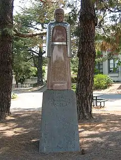 ![]() Benny Bufano's 1940 statue of Louis Pasteur in stainless steel and granite[1][2] at San Rafael High School, said to be the site of the original 4:20 gatherings in 1971 | |