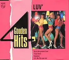 4 Gouden Hits is the fifteenth single by the Dutch girl group Luv', released in 1989 by Philips Records. This Maxi CD single includes four hit songs that were successful in 1978 and 1979: "You're the Greatest Lover", "Trojan Horse", "Casanova" and "U.O.Me (You Owe Me)".[1]