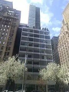 Through the 1880s, the surrounding area of Park Avenue had been mostly undeveloped, but by the 1900s, the site contained six-to-eight-story residences, as well as a nine-story New York City Board of Education building at the address 500 Park Avenue.[4] In the late 19th century, the Park Avenue railroad line ran in an open-cut in the middle of Park Avenue. The line was covered with the construction of Grand Central Terminal in the early 20th century, spurring development in the surrounding area, Terminal City.[5][6] The adjacent stretch of Park Avenue became a wealthy neighborhood with upscale apartments.[4] The Board of Education building, designed by Napoleon LeBrun, was occupied by its namesake from the early 1890s to 1940.[7][8] Afterward, it was used by various government functions, such as the Civilian Defense Recruitment, the Youth Board, and the Mayor's Reception Committee.[8]