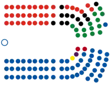 The National Party won 47.04% of the vote, entitling it to 60 seats. As it won 41 electorates, an additional 19 members were taken from the party list. After the resignation of Northland MP Mike Sabin a by-election was held and lost to New Zealand First. The party's share of seats was reduced to 59.