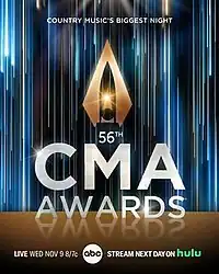 The 56th Annual Country Music Association Awards was held on November 9, 2022 at the Bridgestone Arena in Nashville, Tennessee. Luke Bryan hosted the ceremony for the second time, with Peyton Manning as his co-host.[1][2] The ceremony was broadcast live on ABC and will be available to stream on Hulu.