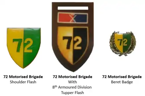 72 Brigade can trace its origins back to a structure in the late 1960s, called 18 Brigade, which was headquartered in Kensington. On 1 August 1974, through a reorganization of the Army’s conventional force, the name was changed to 72 Motorised Brigade.[1]