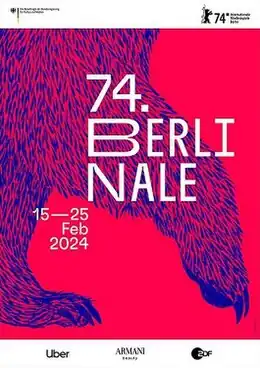 The 74th annual Berlin International Film Festival, will take place between 15 and 25 February 2024 in Berlin, Germany.[1] Kenyan-Mexican actress Lupita Nyong'o will serve as the Jury President for the main competition.[2][3]