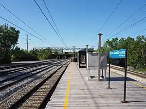 75th Street (Grand Crossing) is an electrified commuter rail station along the Metra Electric Main Line in the Greater Grand Crossing neighborhood of Chicago, Illinois. It is located at and over both 75th Street and South Chicago Avenue, and is 9.3 miles (15.0 km) away from the northern terminus at Millennium Station.[2] In Metra's zone-based fare system, Grand Crossing is in zone B. As of 2018, the station is the 231st busiest of Metra's 236 non-downtown stations, with an average of 14 weekday boardings.[1]
