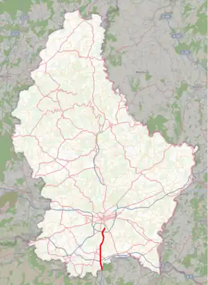The Autoroute 3, abbreviated to A3 or otherwise known as the Dudelange motorway (Luxembourgish: Diddelenger Autobunn, French: Autoroute de Dudelange), is a motorway in southern Luxembourg. It is 13.318 kilometres (8.275 mi) long and connects Luxembourg City to Dudelange. At Dudelange, it reaches the French border, whereupon it meets the A31, which leads to Metz.