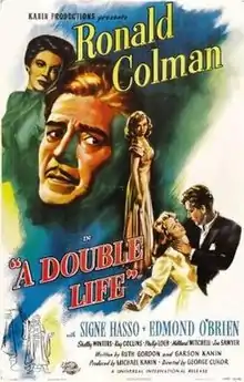 A Double Life is a 1947 American film noir which tells the story of an actor whose mind becomes affected by the character he portrays. It stars Ronald Colman and Signe Hasso. It is directed by George Cukor, with screenplay by Ruth Gordon and Garson Kanin.[2] Ronald Colman won the Academy Award for Best Actor for his performance in this film.