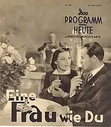A Woman Like You (German: Eine Frau wie Du) is a 1939 German romance film directed by Viktor Tourjansky and starring Brigitte Horney, Joachim Gottschalk and Hans Brausewetter.[1] A young woman lives an unfulfilled life until she falls in love during a holiday abroad.[2]