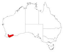 It is native to an area along the south coast in the Goldfields-Esperance and Great Southern regions of Western Australia extending from Albany in the south west to Tambellup in the north west through to Ravensthorpe in the east where it grows in sandy-loam to clay soils[1] as a part of mallee scrubland communities.[2]