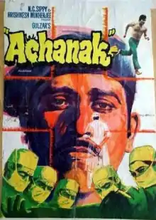 Achanak (transl.Suddenly) is a 1973 Indian Hindi-language film, directed by Gulzar, written by Khwaja Ahmad Abbas, and starring Vinod Khanna. Gulzar received a Filmfare nomination as Best Director for this film. Even though Gulzar is an accomplished lyricist, this film did not have any songs in it.[1] K.A. Abbas earned a Filmfare nomination for best story.[2] It is inspired by the real-life sensational 1958 murder case KM Nanavati v State of Maharashtra.[3]