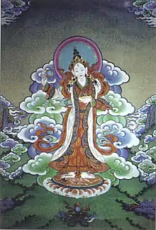 Achi Chökyi Drölma (Wylie: a phyi chos kyi sgrol ma) is the Dharma Protector (Dharmapāla) of the Drikung Kagyu school of Tibetan Buddhism. Achi Chokyi Drolma is the grandmother of Jigten Sumgön, the founder of Drikung Kagyu. She also appears as a protector in the Karma Kagyu refuge tree as Achi Chodron and is a dharmapāla and dakini in the life story of the Nyingma tertön Tsasum Lingpa (Wylie: rtsa gsum gling pa).