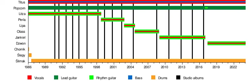 Acid Drinkers are a Polish thrash metal band formed in September 1986 in Poznań. Acid Drinkers were formed on 21 September 1986 consisting of Tomasz "Titus" Pukacki (vocals, bass) and Robert "Litza" Friedrich (guitar, vocals). The band's style is thrash metal, with influences of heavy metal and hardcore punk. Acid Drinkers are rated as one of the most important bands in the Polish thrash and heavy metal world.[1]