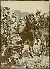 A depiction of Hamilton-Browne during the action from his own 1912 book of his experiences in Southern Africa