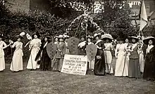 In 1908 the Actresses' Franchise League was founded by Gertrude Elliott, Adeline Bourne, Winifred Mayo and Sime Seruya at a meeting in the Criterion Restaurant in London.[1] [2] While "actresses" are specified in the organisation's name, any woman who was or had been in the theatrical profession was welcome to join. British actresses who joined included Sybil Thorndike, Italia Conti, Inez Bensusan, Madge Kendal, Gertrude Elliott, Ellen Terry, Lillah McCarthy, Decima Moore, Cicely Hamilton, Beatrice Forbes-Robertson Hale, Christabel Marshall, Lena Ashwell, Edith Craig, Janette Steer, Ellison Scotland Gibb and Lillie Langtry.