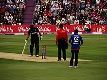 - ↑ "Cricket Records. Records. New Zealand in England ODI Series, 2015 – England. Batting and bowling averages". ESPNcricinfo. Retrieved 14 October 2018.