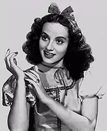 In 1935, after her brief stint as a chorus girl and session singer at MGM, Walt Disney hired Caselotti as the voice of the heroine, Snow White.[4] She was paid a total of $970 for working on the film (equivalent to $19,746 in 2022).[2] She was not credited for the role, and had trouble finding new opportunities later in life. Jack Benny specifically mentioned that he had asked Walt Disney for permission to use her on his radio show and was told, "I'm sorry, but that voice can't be used anywhere. I don't want to spoil the illusion of Snow White."[5] Caselotti had two more jobs in the film business. The first was an uncredited role in MGM's The Wizard of Oz (1939); she provided the voice of Juliet during the Tin Man's song, "If I Only Had a Heart", speaking the line, "Wherefore art thou Romeo?"[6] In 1946, she had an uncredited role in Frank Capra's It's a Wonderful Life, singing in Martini's bar as James Stewart is praying.[7]