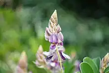 Afgekia mahidoliae, known as Kan Phai Mahidol (กันภัยมหิดล),[1] is a type of vine in the family Fabaceae. It is found in Kanchanaburi province, Thailand. Its leaves are compound with 4–6 pairs of leaflets. The stem has several petiolules. The dorsal side of the leaf has brown colored hairs. The flower is an erect panicle with white and purple color. The pod is flat, short and round. Its scientific name is given in the honor of her Royal Highness Princess Srinagarindra, the Princess Mother.[1]